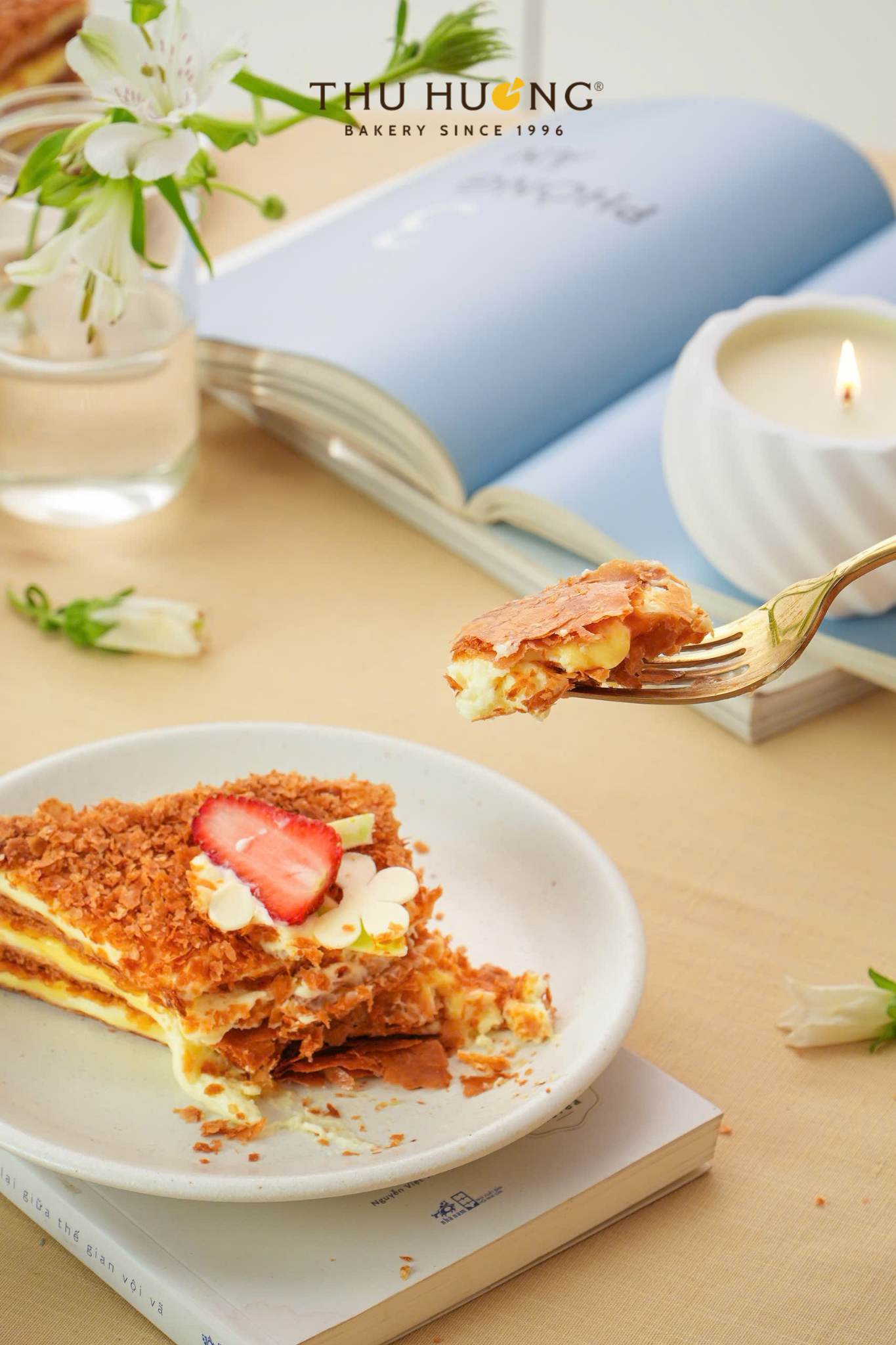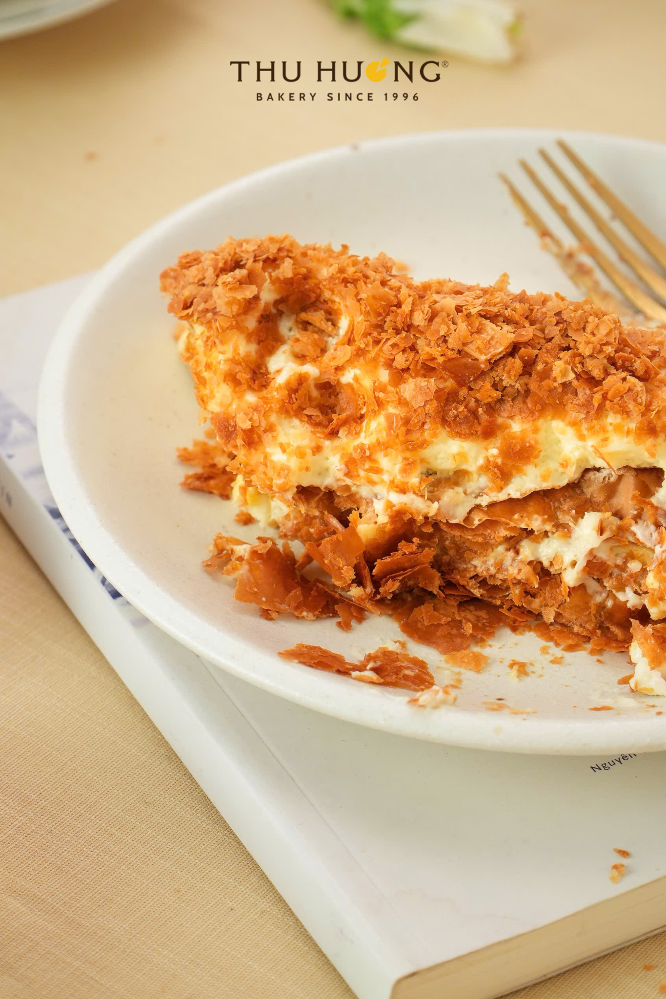 Napoleon Cake là bản giao hưởng của những lớp bánh giòn tan xen kẽ cùng kem custard vani béo mịn. Từng lớp puff pastry được nướng vàng hoàn hảo, hòa quyện cùng lớp kem mềm mượt, tạo nên cảm giác vừa giòn rụm vừa tan chảy đầy mê hoặc trong từng miếng bánh.