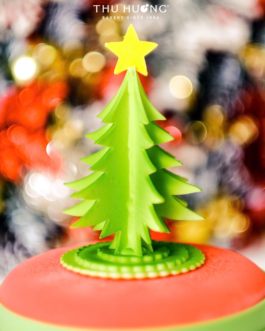 Christmas Tree Mousse Cake nổi bật với thiết kế tối giản nhưng tinh tế, điểm nhấn là cây thông xanh trên nền bánh mousse mịn. Sự kết hợp giữa vị matcha thanh nhẹ và nhân dâu tây chua ngọt tạo nên hương vị hài hòa, tươi mới. Phù hợp cho những ai yêu thích phong cách hiện đại và nhẹ nhàng trong mùa lễ hội.